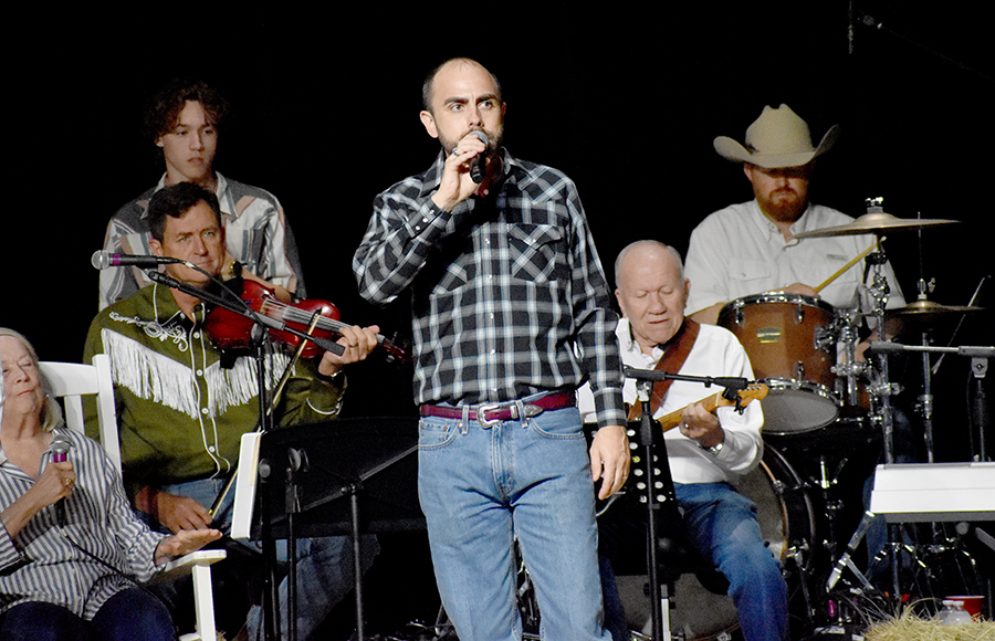 A stage veteran since he was 10 and began singing with his grandfather at the Thursday night Franklin Food Store Jam Session, Harold Kennington was assigned the emcee slot to fill the void left with the passing of Jerry French by Mrs. Anders, who had also assigned him his first production singing part when he was in 7th grade and she was the teacher who inherited the job of writing the show from another teacher, Ann Beane, who started what’s turned to community tradition as a fund raiser for seniors.